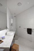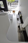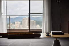公寓楼装修要点:大门的右侧,原先的厕所位置成了西餐;客厅阳台发展为休息区。子生活阳台相互连接,形成一个有两种入口多功能的···